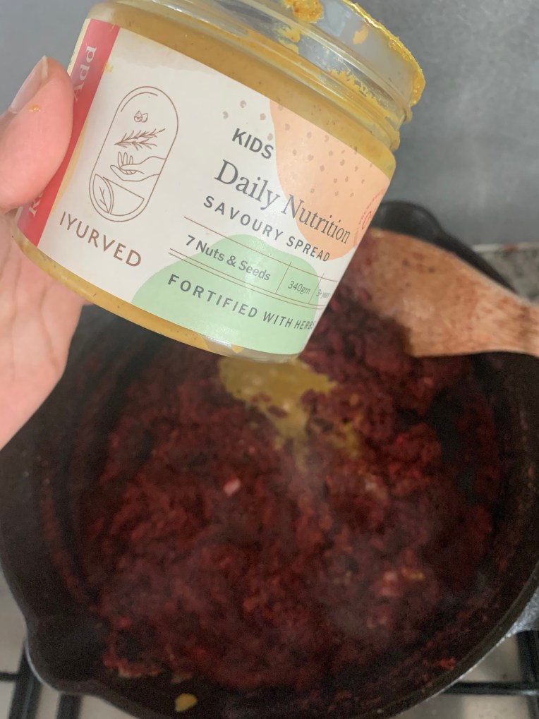 - 2 tbsp Iyurved’s Daily Nutrition savoury spread (order here)