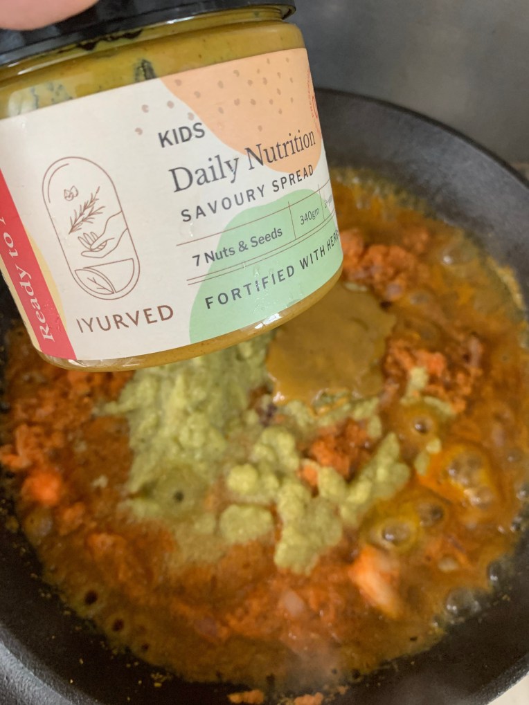 - 3 tbsp Iyurved’s 7 nuts and 5 herbs Savoury spread (order here)