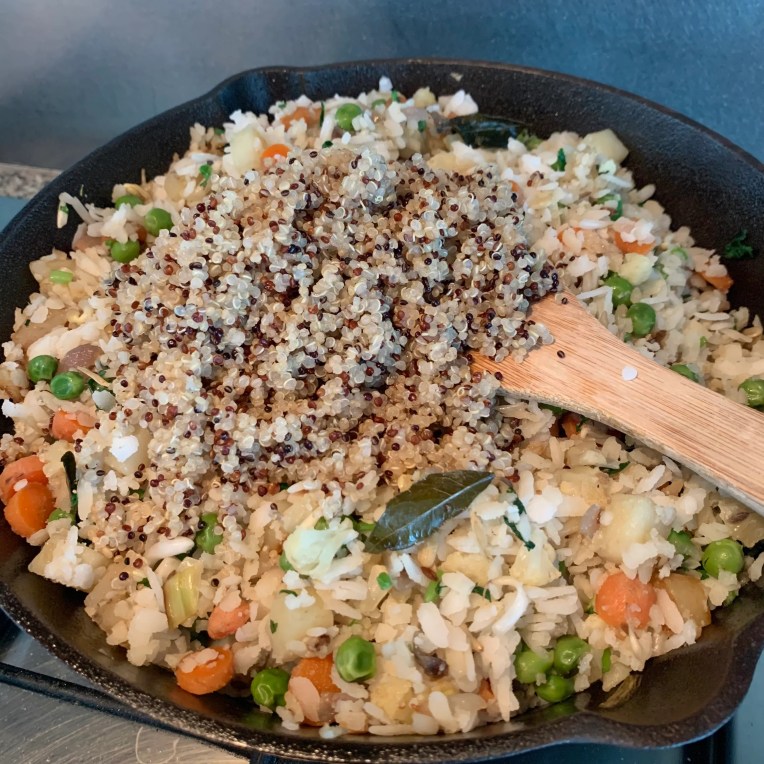 Recipe for Quinoa Poha (Quinoa rice flakes meal)- 6 veggies, 2 grains, 1 sprout and nut