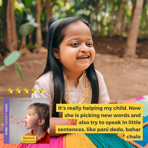 My child has been doing the speech exercises for 25 days, and it's really helping! She's now picking up new words and even forming short sentences like ‘pani dedo’ and ‘ghar chalo.’ Thank you so much!