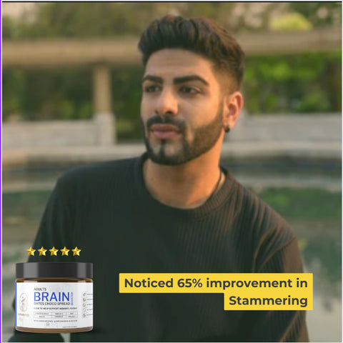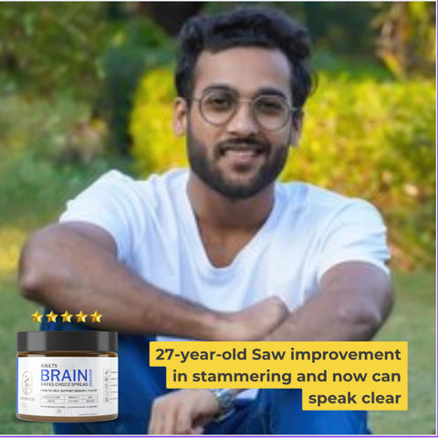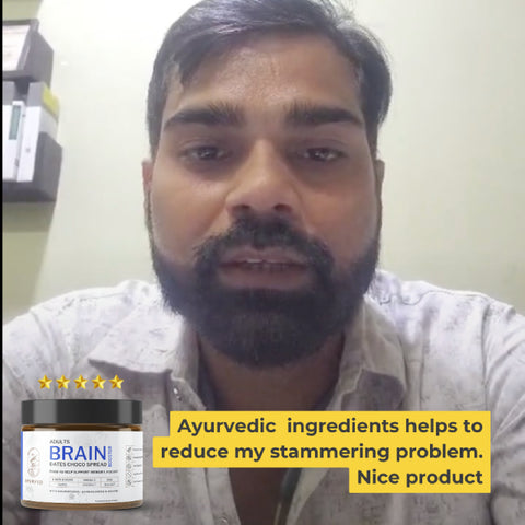 My age is 27, I have stammer problem from childhood , mostly apni mn ki baat nhi keh pata tha , qki stammer ki vjh se confidence pahle hi gir jata tha , kai mandir gya , speech therapy bhi li , but no effect. meine iyurved ka adult brain booster order kiya and use kiya, it's miracle, Voice clear hone se mn ko alag hi khushi milti hai..